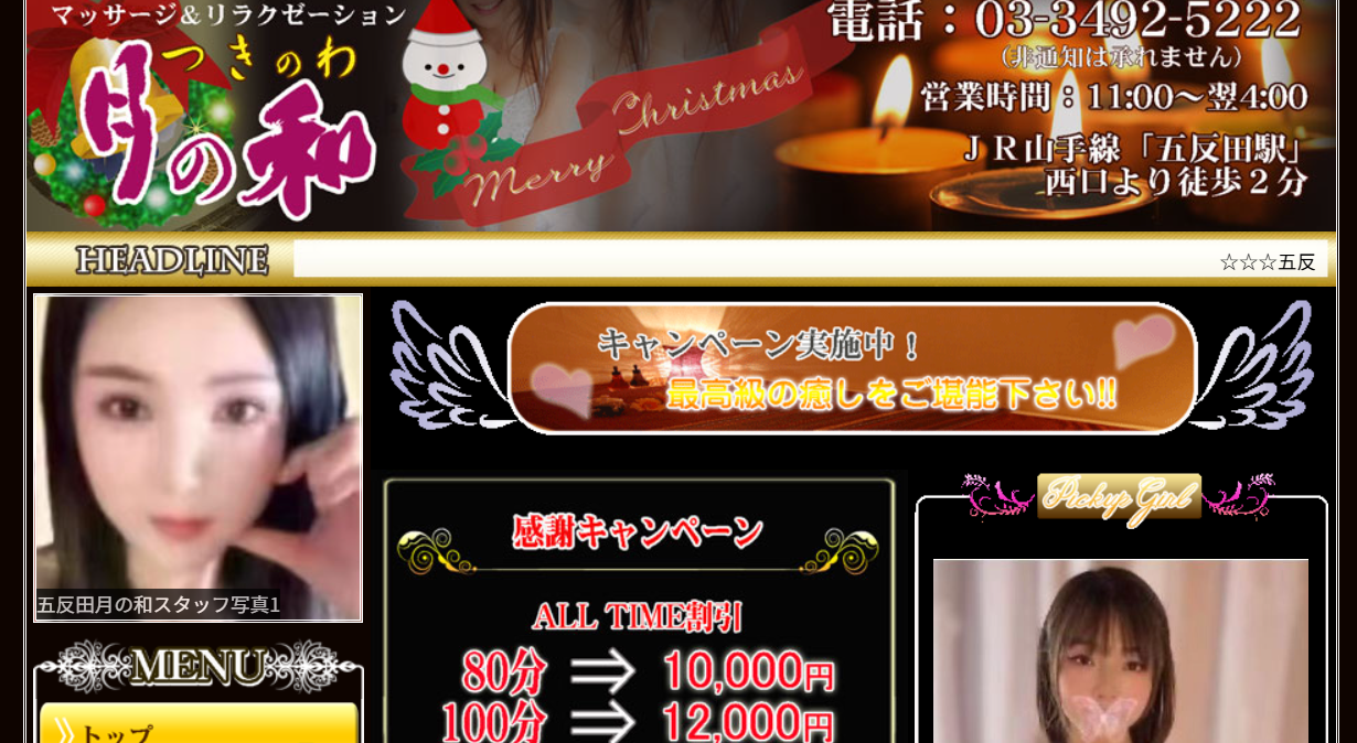 五反田駅西口より徒歩圏内 12:00〜LAST03-3492-5222セラピスト数日本人 12人年齢層20代部屋タイプルーム型五反田の癒しの空間でアカスリリラクゼーション五反田駅近くにあるアカスリリラクゼーションマッサージ『月の和』は、美人揃いのスタッフがお客様の疲れやストレスを癒します。アロマを使用したリラクゼーションマッサージで、心身ともにリフレッシュできる癒しの空間を提供。深夜割引や団体割引もあり、追加料金一切なしで安心してご利用いただけます。新人スタッフも続々入店中で、お客様のニーズに合わせた最高の癒し体験をお届けします。オイルマッサージ リンパマッサージ アジアン 洗体クーポン記念キャンペーン実施中。深夜割引あり、団体割引あり、追加料金一切無し、時間短縮一切無し。 -